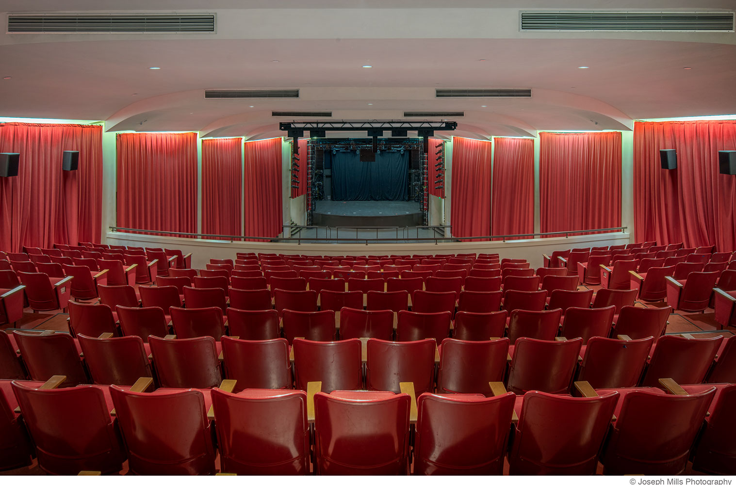 The existing theater ceiling was in extreme disrepair to the point of causing safety issues. A Leica ScanStation C10 machine was used to carefully scan the ceiling so it could be built back to its exact historic shape and quality using new materials. Original theater seats in the auditorium balcony were restored and the original film projectors were kept intact.